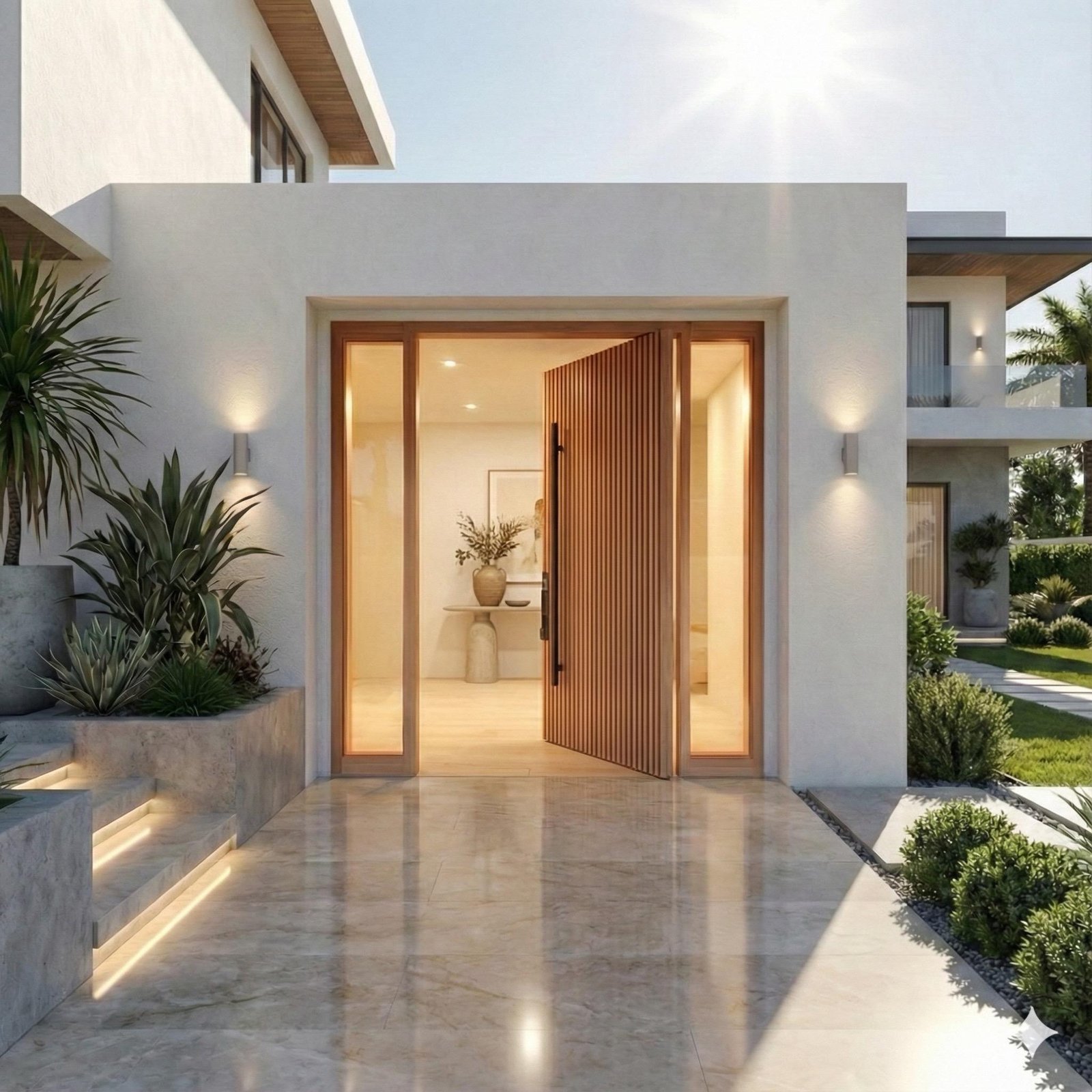 Modern mimaride güçlü bir duruş sunar. Geniş açıklıklar ve şık detaylarla villa girişlerine prestijli bir görünüm kazandırır.